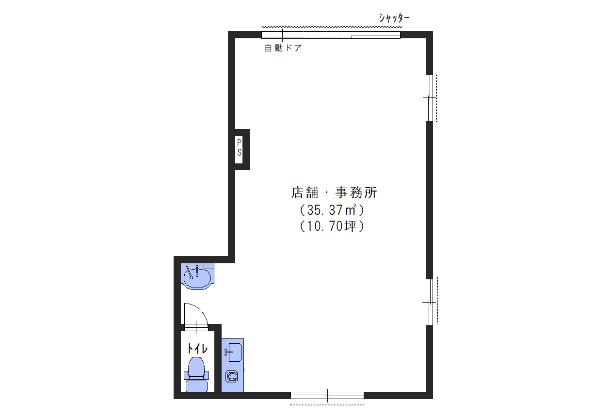 ・スケルトン ・カーペット敷き ・自動ドア ・シャッター ・洗面化粧台 ・シャワートイレ